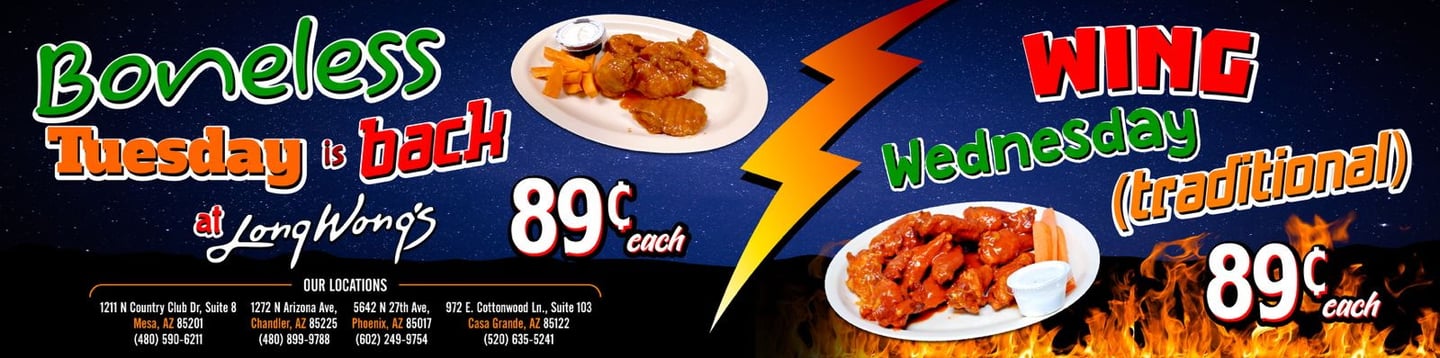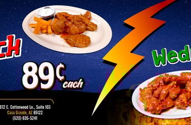 Explore our menu featuring Arizona's best wings, burgers, pizza, hotdogs, and sandwiches.